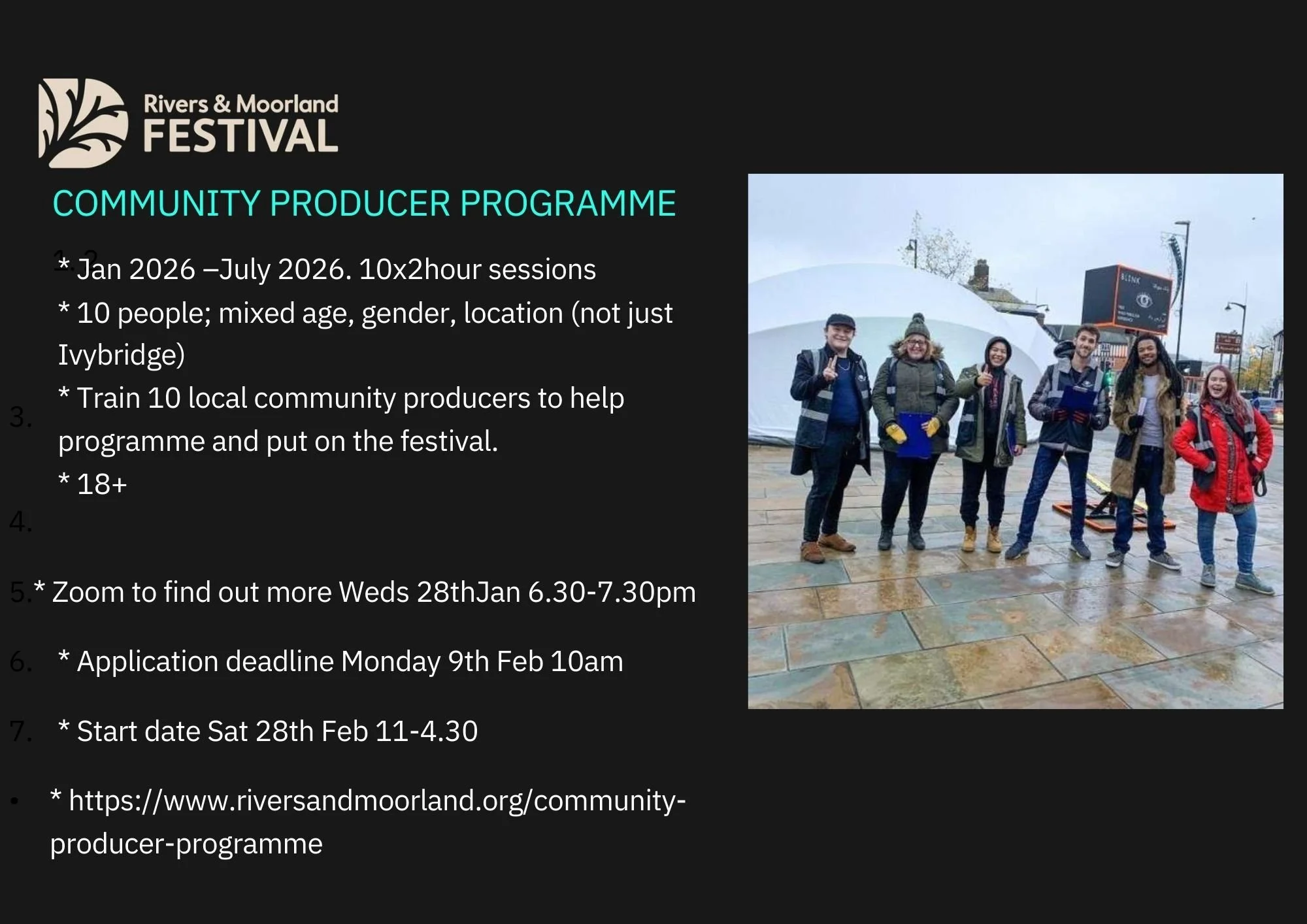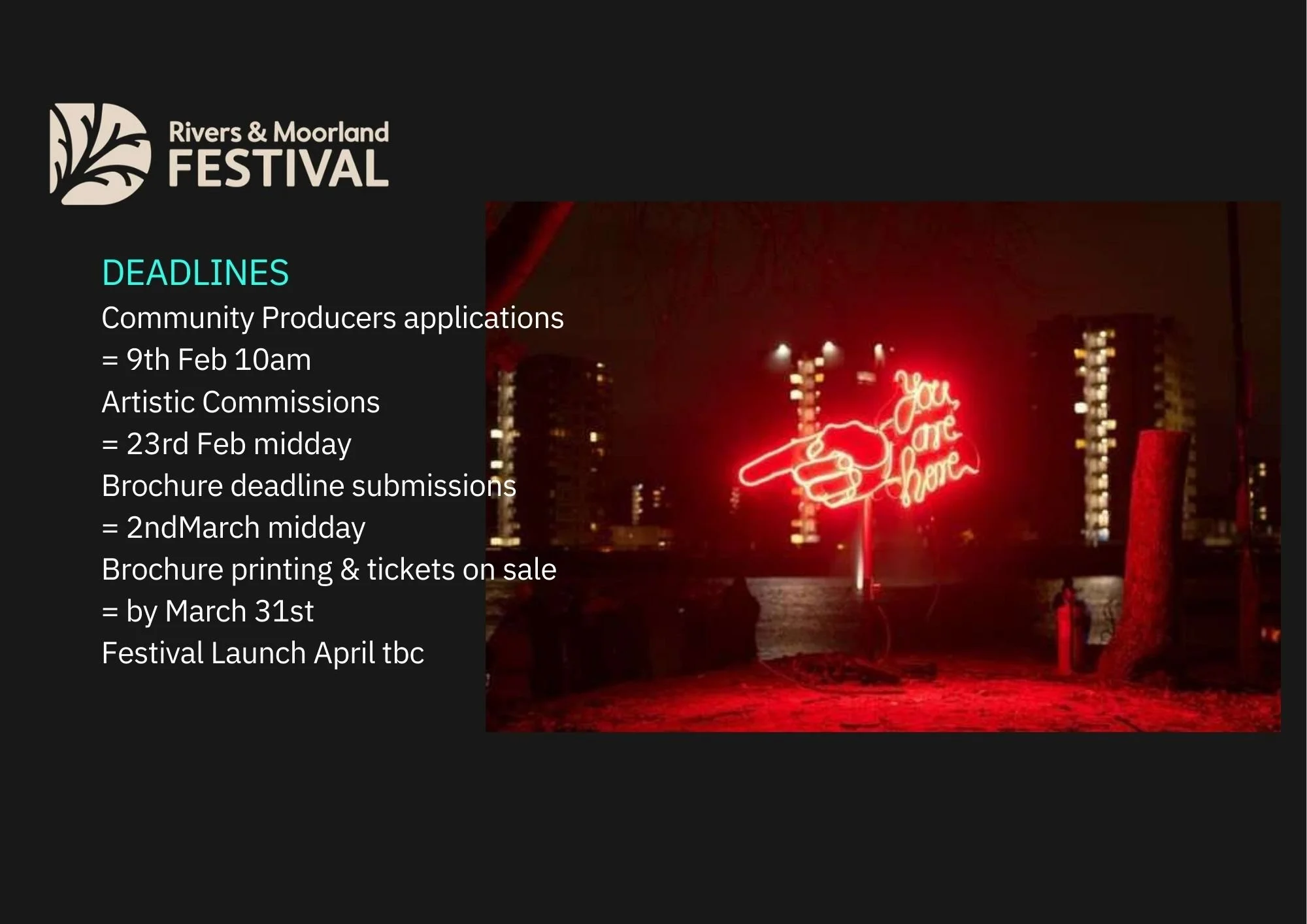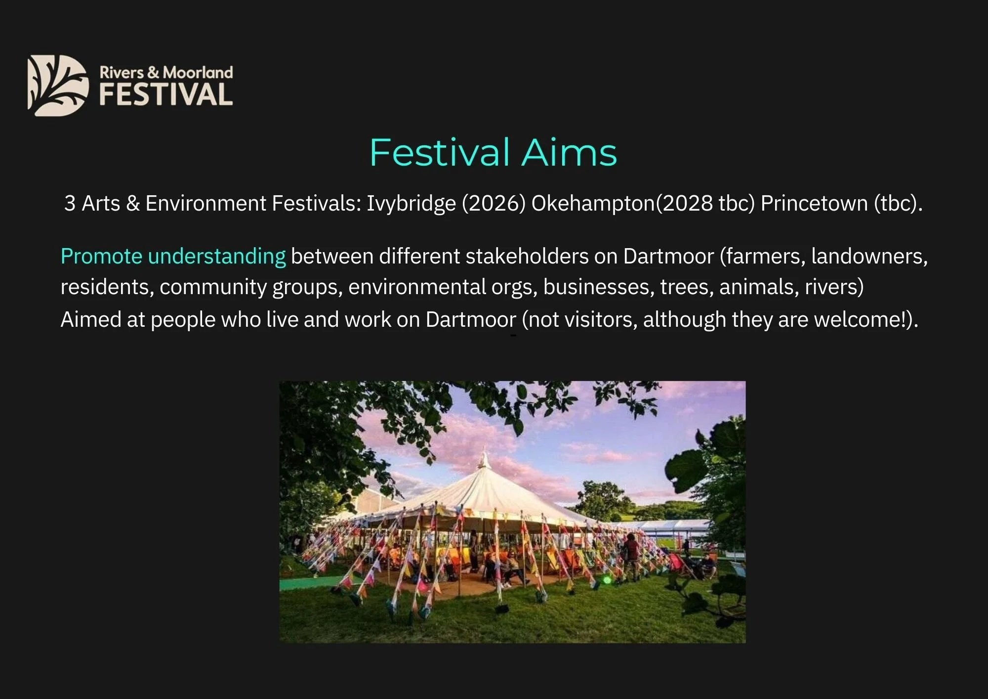 There will be a Community Producer Programme to train Dartmoor residents to put on events, whilst helping to run & programme the festival.